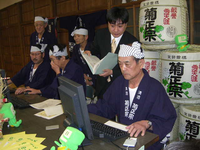 確定申告初日の17日には大阪国税局管内でPR活動を展開。菊正宗酒造(神戸市東灘区魚崎西町)の嘉宝蔵では丹波杜氏5人が電子申告に挑戦するイベントを実施。税務署がこんなことまでやるとは時代も変わったものである。