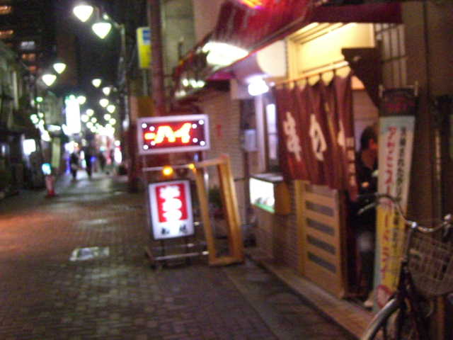 記念碑台からは阪急六甲行きの阪急バスで20分。阪急六甲から三宮に向けて少し歩く。水道橋筋商店街の端にあるのがこの店。とにかく安くてうまい。神戸着任直後に来た。串7本とナス揚げ+ビール1本で1370円也