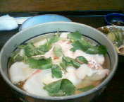 元町の「文月」は思い出したように行く店だが、大将の腕は折り紙付き。ビン長マグロやアオリイカを肴に飲んだあと、鯛茶漬けを食べたくなった。頼むと、もったいないなと言いながら、包丁を握って、何と鯛をさばき始めたのには驚いた。もちろん、刺身でもいただいたが、だし汁で食べる鯛茶漬けのおいしいこと。鮭茶漬けや梅茶漬けも悪くはないが、鯛茶漬けを食べ始めると、ほかのものを食べられなくなってしまった。山陽道三木サービスエリアの宝塚ホテル経営レストランで食べた鯛茶漬けもおいしかったが、この文月には適わない。不思議な店である。