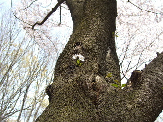 大木の幹にしがみ付くように、たくましく咲く花。旺盛な生命力に感心する。この生命力にあやかりたいものだ。