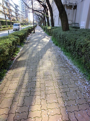 2012/04/12 / 最終更新日時 : 2012/04/12 kooshoo 東京日誌Ⅱ さらば!今年の桜よ 中央やや右に一片の花びらが写っている(ような) 一応路上の”証拠物件”も(7時23分) 昨日は夕刻から小雨が降ったが、12日は低気圧も前線も東海上へ離れ、朝から太陽が燦々と降り注ぐ。春本番の陽気の中を歩くのは気持ちが良い。満開だった桜もやや強い風に花びらを散らし始めた。咲き始めてせいぜい2週間ほどの短い命。今年も楽しませてもらった。 FacebookXBlueskyHatenaCopy コメントを残す コメントをキャンセルメールアドレスが公開されることはありません。 ※ が付いている欄は必須項目ですコメント ※ 名前 ※ メール ※ サイト Δ このサイトはスパムを低減するために Akismet を使っています。コメントデータの処理方法の詳細はこちらをご覧ください。