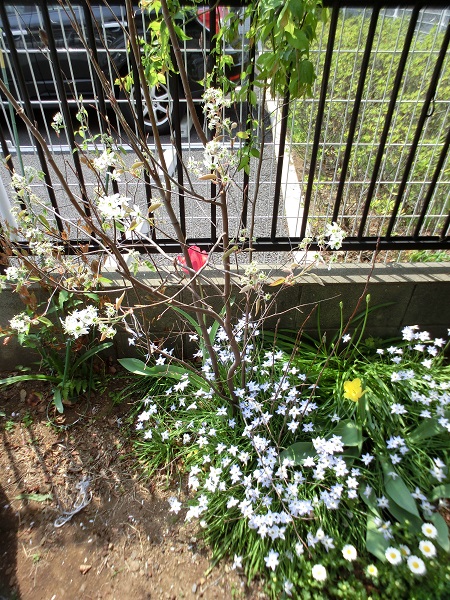 2018年も春が来た。半分を車が占め、その車のおかげでかなり大木になっていたハナミズキも切らざるを得なかった。それでもあとの半分は庭である。