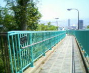 ブリッジと聞いて、それなりの橋を想像していたが、何と、再度山(ふたたびさん)ドライブウエイを跨いで架けられた横断歩道橋のこと。ただ、それが単なる歩道橋ではなくて、美しい8の字型を描くループ橋なのがミソ。