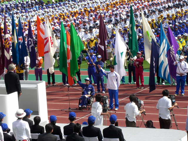 第6回全国障害者スポーツ大会「のじぎく兵庫大会」が10月14日、10日まで行われていた国体と同じ神戸総合運動公園ユニバー記念競技場で開幕した。はばタンダンスなどのオープニングプログラムや歓迎演技なども含め約3時間。競技は16日までの3日間。