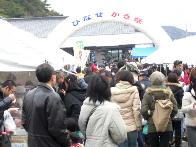 前から気になっていた「ひなせのかき祭り」に25日、行ってきた。JR播州赤穂線で播州赤穂駅から3つ目か。兵庫県ではなく、岡山県備前市日生(ひなせ)。会場は日生町漁業協同組合「五味の市」周辺広場。