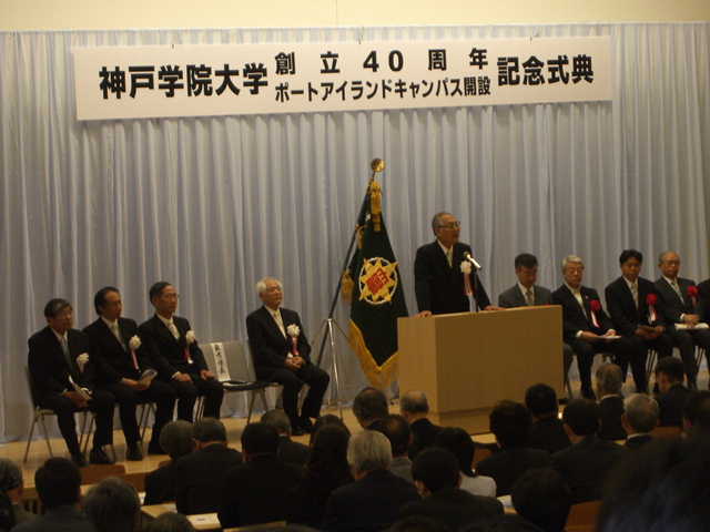 神戸学院大学が昨年創立40周年を迎えたことと今年4月に神戸ポートアイランドに新キャンパスを開設したことを記念する式典が6月2日、新キャンパスで開催された。