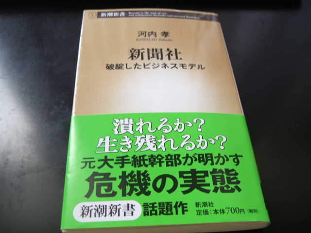 元毎日新聞社常務取締役(営業・総合メディア担当)が書いた『新聞社』(新潮新書)を読んだ。「破綻したビジネスモデル」という恐ろしい副題が付いている。業界の内部にいる者にとっては新しくも何ともないかもしれないが、それを書いたのが役員にまで上り詰めた人間だというのはやはり衝撃的だ。