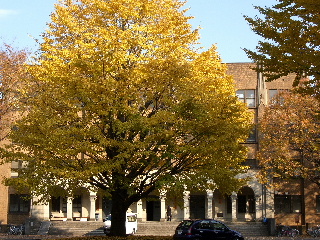 ポカポカ陽気の昼下がり、東大の構内でイチョウを眺めた。正門から安田講堂に続く300mほどの両サイドはイチョウの大木が並木を作っている。その先に講堂が太陽に輝いて屹立している。講堂の下あたりにある中央食堂でとろろそばを食べたあと、ゆっくりイチョウを眺めた。