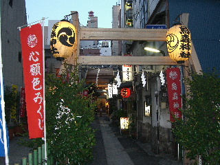 JR新橋駅の出口の1つ「烏森口」(からすもりぐち)の名前の由来である烏森神社もこちらにある。「伸びゆく新橋の地にふさわしい近代建築美にあった神社」と神社の縁起には書かれていたが、神殿に通じる参道沿いに飲み屋が並んでいるのには感心した。流石、新橋である。ちなみに神殿はコンクリート作り。昭和の近代建築美とはコンクリートだった。