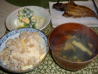 筍の先っぽの部分のことを「姫皮」と呼ぶらしい。薄い皮が何重にも重なって、十二単に例えた呼び名だ。季節の現実は冬だが、筍ご飯と姫皮のお吸い物でせめて春をいただいた。