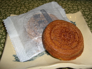 小倉あんを餅粉の生地で包んで焼き上げた、モッチリとした食感の焼き菓子。上品な和菓子である。焼き印は赤坂氷川山車、車輪のイメージ。赤坂青野製菓(港区赤坂7-11-9)。