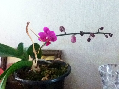 台風4号が日本列島を襲った19日、わが家にやってきて4年になる蘭チャンが2度目の花を咲かせた。2年ぶりだ。蕾は合計10個付いている。これから順々に咲いていくのだと思うと、世話してきたこちら側も嬉しい。世話をすると言っても、1週間に1度、水をやることぐらい。固形肥料も花芽を確認してから控えめにあげた。過剰な世話を嫌うのが蘭の気品の高さのようである。