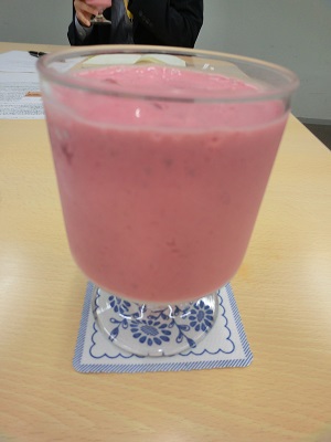 36階の喫茶で作られているらしい。電話で注文すると、ウエートレスさんが運んできてくれた。マックシェークというか、スムージーというか、ドロッとした飲み物だ。意外なところで意外な飲み物をいただいた。