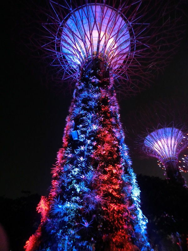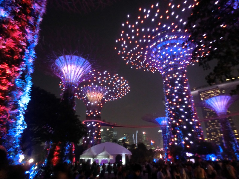 スーパーツリーが巨大な光のアートとなって、観客をファンタジーの世界にいざなう。人集めのイベントであることは分かっていても、一夜・二夜・三夜限りの観光客にとってはエキサイティングなショーだ。