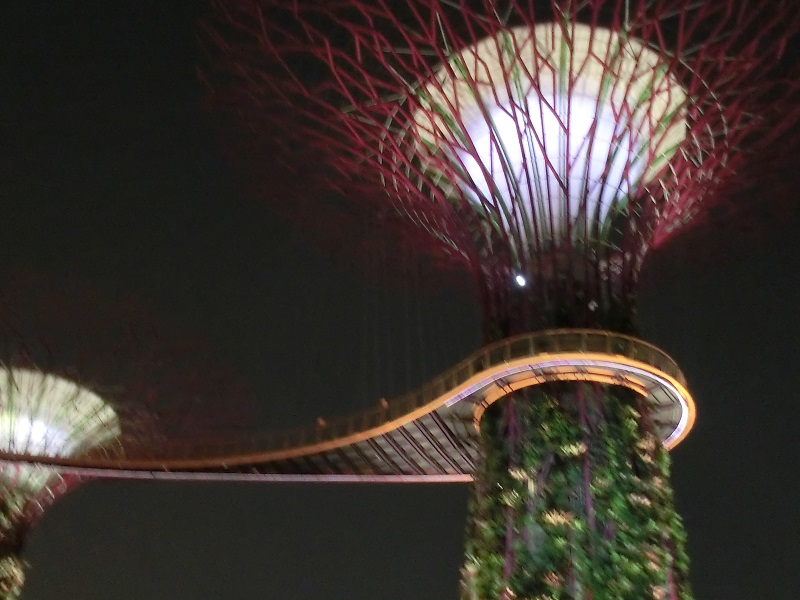 夕食を終えて向かったのはマリナエリアにある未来型ガーデン「ガーデンズ・バイ・ザ・ベイ」(Gardenz by the Bay)。毎晩、7時45分と20時45分に「OCBCガーデンラプソディ」と名づけられた光と音楽のショーが開催されるからだ。
