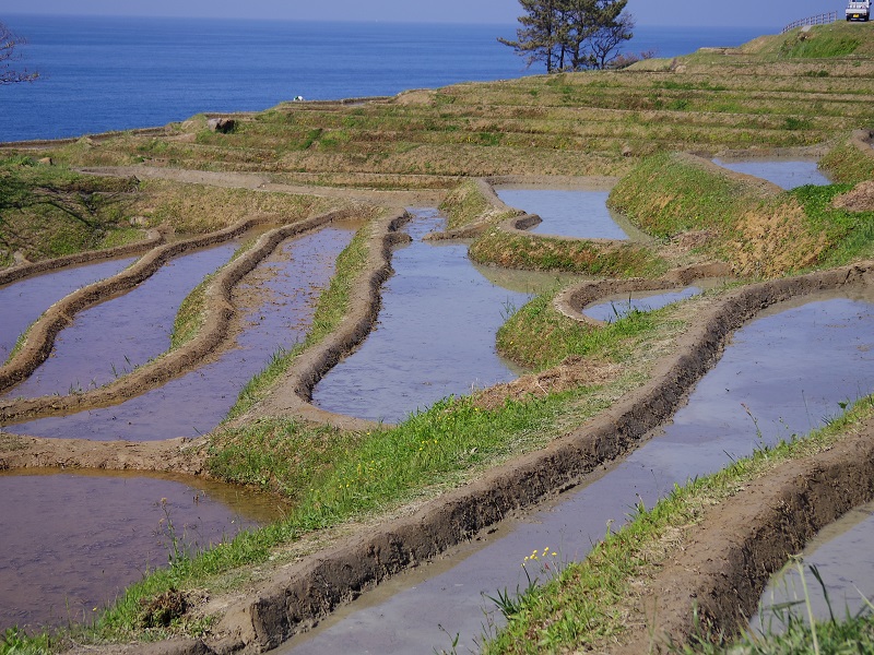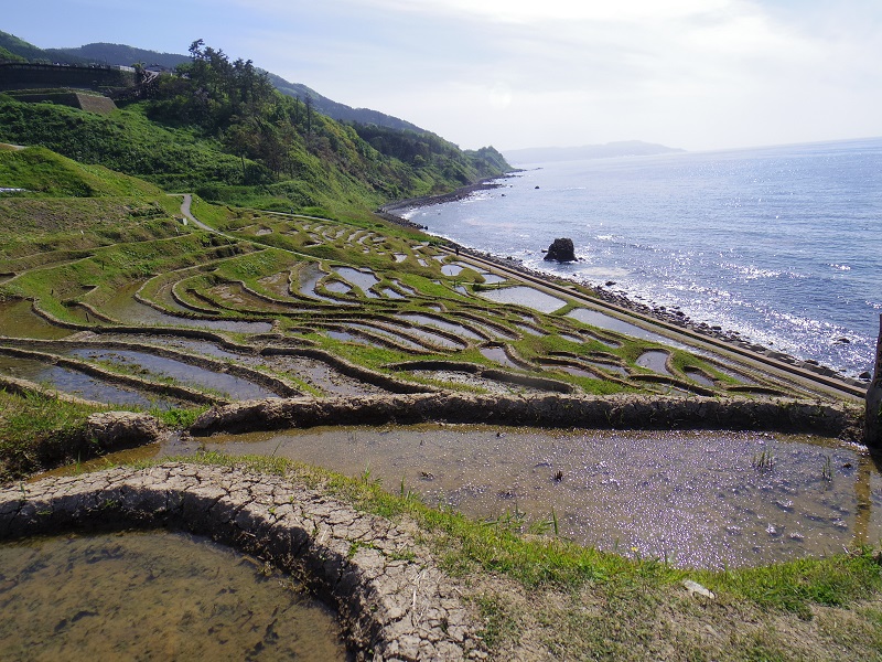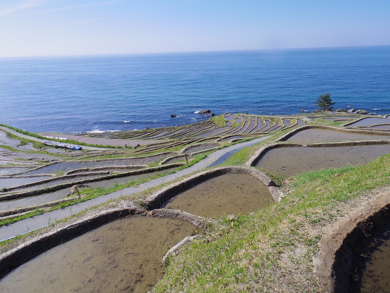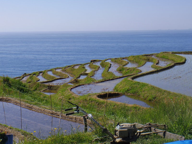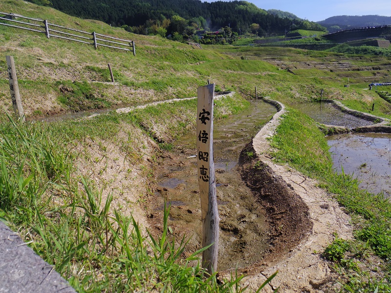 水田1面当たりの面積は約20平方メートル。極めて狭小で、約3.8ヘクタールの範囲に1004枚の典型的な棚田風景が広がっている。棚田には4月末頃から水が引かれ、一部の棚田は田植えが終わっていた。