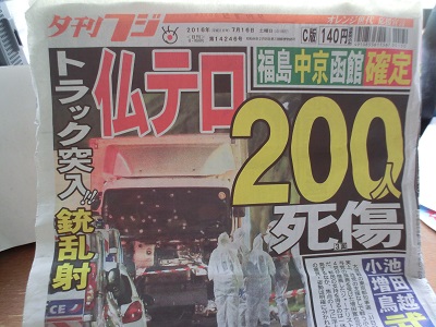 世界はテロ事件が頻発している。昨年3月にはチュニジアで博物館襲撃事件(22人死亡)、今年3月にはブリュッセルの空港や地下鉄で連続テロ(32人死亡)、6月には米フロリダ州のナイトクラブで爆発と銃撃戦(44人死亡)、7月にはバングラデシュで飲食店が襲撃され、日本人を含む20人が殺された。イラクのバグダッドでも連続爆弾テロで292以上が亡くなった。