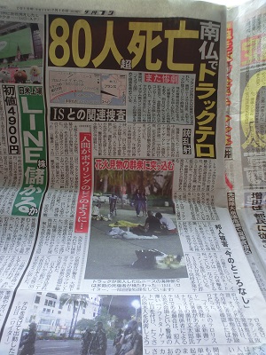 現場となった「プロムナード・デ・ザングレ」(英国人の遊歩道)は最大の観光地で、花火を見るために多くの市民や観光客らが集まっていた。パリ検事局は、イスラム教スンニ派過激組織「イスラム国」(IS)との関連を含めて捜査しているという。