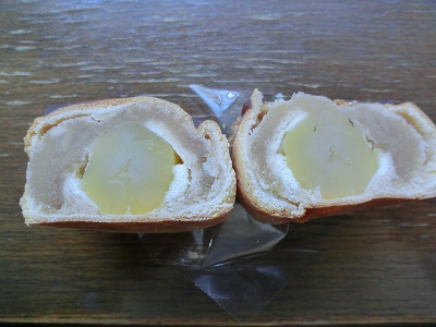 中に刻んだ栗を練り込んだ白あんと栗が一粒まるごと入っているのは丹波の勝栗最中と同じ。とにかくあまり甘くなく、それでいて結構美味しい。
