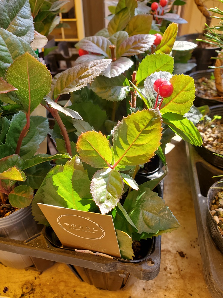 ヤブコウジは千両や万両に似た実が特徴的で、正月の縁起物として寄せ植えにも用いられる。花言葉は「明日への幸福」。また果実や葉の部分が「コウジ」によく似ており、山地の藪(ヤブ)の中に生えることから、「ヤブコウジ」と名付けられたという。