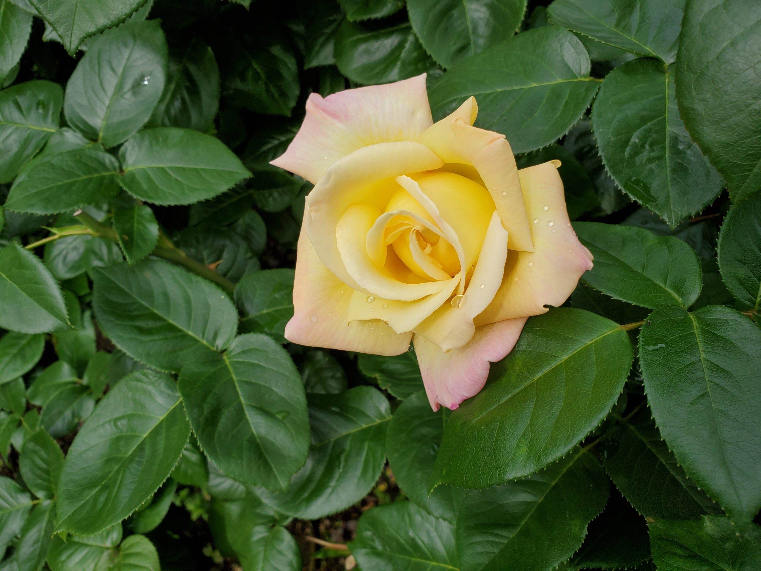育種家、忽滑谷史記氏(ぬかりや・ふみのり)が2021年に作出したバラ。黄色と桃色の優しい絞り咲きの色で木漏れ日の暖かい”光”を表現しており、光が丘をイメージして選抜育種されてできた品種。