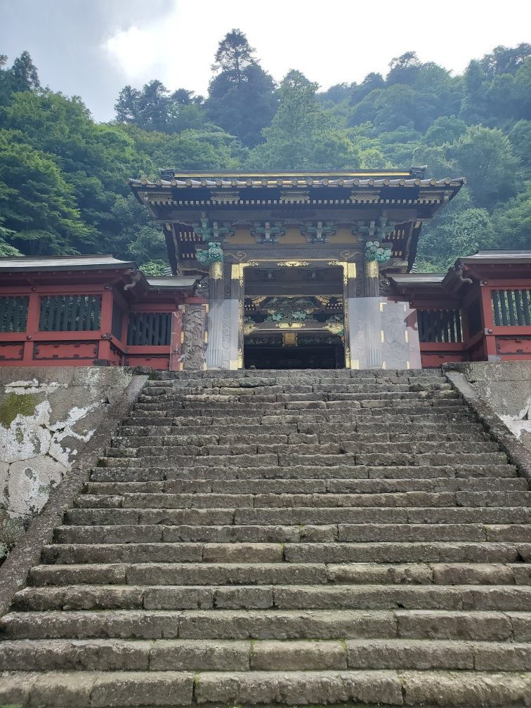 宝暦6年(1756)の建造。唐門は妻を唐破風にした銅葺平入りの門で、これらの建物の周囲は彫刻で埋められている。