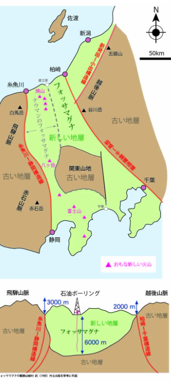 中学校のとき地理の授業で「フォッサマグナ」(大きな溝)について学んだことがある。明治政府の招へい教師で、ドイツ人地質学者エドムント・ナウマン氏によって名付けられた。