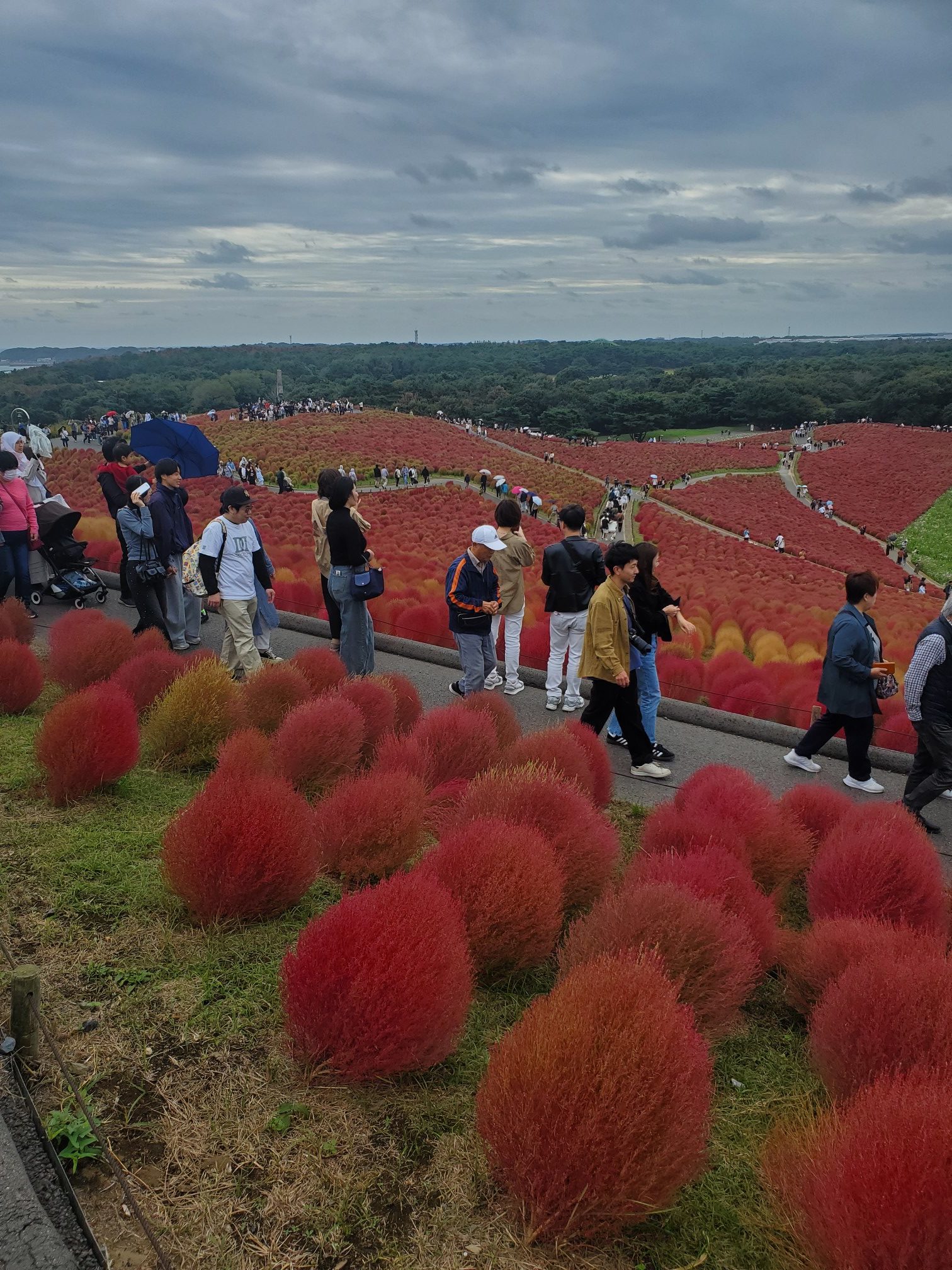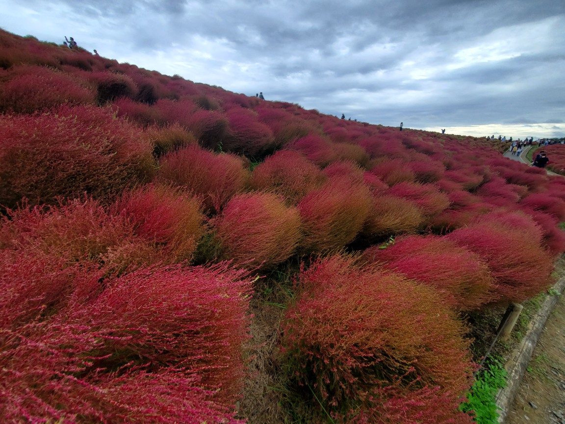 境町から100キロほど茨城県を戻り、ひたち海浜公園に向かった。秋になると、紅葉したコキアがテレビで放映され、春は青色のネモフィラの花が一帯を覆う。あの風景を味わいたかった。